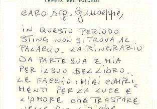 Il ringraziamento (a sinistra) per il mio libro Vita nuova (dedicato a Beatrice) dalla Tenuta del Palagio, residenza italiana di Sting, grazie alla preziosa sensibilità umana e letteraria della Sig.ra B.R. ...